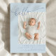 Simple Blue Script Cute Hello Baby Two Photo Birth Announcement
