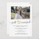 Anuncio elegante y simple de recién casados con foto de pareja con ilustración de anillos de compromiso pintada a mano con acuarela y foto de pareja.