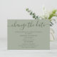 Anuncia el aplazamiento de tu boda con esta tarjeta minimalista de color salvia verde que presenta una fuente de letra moderna.