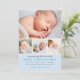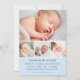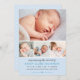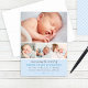 Esta elegante y dulce tarjeta de anuncio de natalidad con foto incluye cuatro (4) fotos de tu bebé recién nacido, texto personalizado que puede ser personalizado, acentos de corazón y rayas, y una combinación de colores de azul claro en polvo y azul cielo con gris carbón vegetal. Un patrón de rayas diagonales se viste por la parte posterior de las cartas.