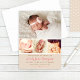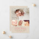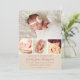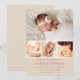 Presenta a tu niña con esta dulce tarjeta de anuncio de nacimiento de cuatro fotos con acentos de corazón blanco sobre un fondo beige neutral rústico. "Anunciando la Llegada De" en letra rosada con el nombre del bebé, detalles de nacimiento y un mensaje de "Padres Orgullosos". La parte trasera presenta un patrón de corazón beige coordinado. Tonos rosa, marrón claro y beige neutral. Todo el texto es totalmente personalizable.