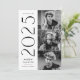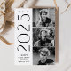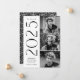 Elegante invitación de graduación con las tres fotos del graduado ubicadas a la derecha del diseño en un diseño vertical. "2023" se exhibe con letras negras y modernas. Personalice la moderna invitación de graduación fotográfica añadiendo el nombre del graduado y el nombre de la escuela. El diseño se invierte para mostrar un fondo geométrico en blanco y negro. ¡Perfecto tanto para graduados de secundaria como universitarios!