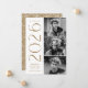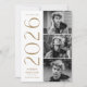Elegante invitación de graduación con las tres fotos del graduado ubicadas a la derecha del diseño en un diseño vertical. El "2025" se exhibe con letras de latón, de arte moderno y de diseño. Personalice la moderna invitación de graduación fotográfica añadiendo el nombre del graduado y el nombre de la escuela. El diseño se invierte para mostrar un fondo geométrico de bronce y blanco. ¡Perfecto tanto para graduados de secundaria como universitarios!