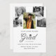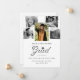 Invitación fotográfica con 5 fotos, 4 cuadrados y un retrato; muestra o no una foto antigua. Usar como invitación o invitación. abrir editor completo para desenmascarar y mover fotos o agregar/quitar un filtro en blanco y negro, etc. Colores personalizados en el fondo del texto y gráfico "Grad"