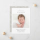Birth announcement cards featuring classic typography with floral pattern on soft neutral beige color.