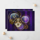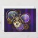 Araña de acero de oro y acero con relojes antiguos decorados con artes dorados sobre el fondo morado, rayado, texturado con lentes y engranajes de latón. Estilo Steampunk.