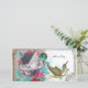 Elegante y divertido diseño floral de estilo vintage con un bebé y cigüeña voladora entre las hermosas rosas rosas rojas, verde azuladas flores de primavera azules y una vibrante y brillante piedra gema 3D de Bulgan Lumini (c).