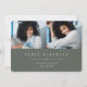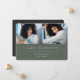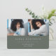 La sencilla y moderna invitación de fotos de graduación incluye dos fotos alineadas una al lado de la otra, con el nombre del graduado, la escuela y el curso bajo letras blancas en un oscuro fondo verde sabio. El nombre y la escuela de tu graduado aparecen debajo. Añade un mensaje personal a la parte posterior, junto con una foto adicional.