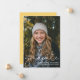 Tarjeta de anuncio de graduado 2024 con superposición de guión moderno con espacio para detalles/información adicional en el reverso. El reverso es amarillo marigold con guión negro