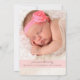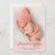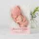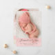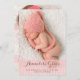 Totalmente moderno y simplemente elegante, este diseño es la manera perfecta de presentar a tu dulce niñita. Presenta una tipografía cursiva preciosa y dos grandes fotos de su bebé, una en la parte delantera y otra en la parte posterior. El frente también contiene información sobre el nacimiento del bebé, y en la parte posterior un área de texto especial para ser personalizada con los padres e información familiar.
