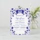 "Invite a sus seres queridos a una vibrante celebración con nuestras invitaciones a la cena de la cena de temática mexicana Talavera. Inspiradas por la icónica cerámica Talavera de México, estas invitaciones muestran patrones florales y geométricos intrincados, pintados a mano, en colores ricos y audaces. El diseño capta la esencia de la artesanía mexicana, aportando un toque festivo y cultural a sus festividades pre-bodas.