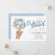 Teddy Bear Balloon Baby Shower Invitaciones Un lindo oso de peluche con globos personalizados para un niño. Cree y Personalizar rápidamente su Invitación azul claro y blanco de Baby Shower. Haga clic en el botón "Personalizar it!" para cambiar el tamaño del texto, el color del texto, el estilo del tipo de letra y más!