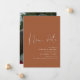 Con todas las restricciones y protocolos de seguridad por la pandemia, notifica a tus amigos y seres queridos la nueva fecha de tu boda con esta tarjeta de anuncio moderna minimalista que dice “nueva fecha” en letra de caligrafía y tema de color terracota. También puedes personalizar la foto en la parte posterior.