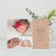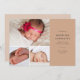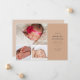 Comparte tu feliz noticia con este anuncio de natalidad con fotos múltiples. La tarjeta de recién nacido contiene tres fotos a la izquierda dispuestas en un collage. A la derecha, añada el nombre del recién nacido, los detalles de su nacimiento y sus nombres en letras grises de carbón vegetal modernas contra un fondo de terracota. La parte posterior del anuncio de nacimiento está en blanco y puede incluir fotos adicionales y/o un mensaje personal.