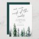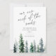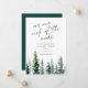 La elegante invitación en movimiento de madera cuenta con una mezcla de altos pinos acuáticos en tonos grises y verde cazador. "Nuestro nuevo cuello del bosque" aparece en la parte superior con letras escritas a mano. Personaliza con tu nueva dirección y nombre de familia. Una invitación de moda que mueve las viviendas en ambientes montañosos o forestales.
