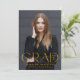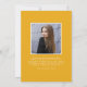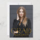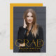 Anuncie su graduación de la escuela secundaria o universitaria con esta moderna invitación de graduación. La invitación de graduación muestra "Grad" en letras amarillas de moda con el año de graduación mostrado dentro de la letra "d". Personalice la parte delantera de la invitación con la foto vertical, el nombre y la escuela del graduado. La invitación se revierte para mostrar una foto adicional mostrada dentro de un marco cuadrado blanco con el mensaje que se muestra a continuación.