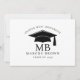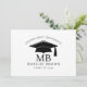 Una moda y una moderna tarjeta de graduación con un elegante diseño de monograma en negro y oro. Este elegante inserto muestra un dramático monograma de escritura dorada con elegantes toques, un tapón de graduación de oro de acuarela, y tu nombre completo en un elegante tipo de letra serif, junto con tu curso de graduación. Una forma perfecta de compartir su información de contacto con amigos y conocidos, asegurándose de que puedan mantenerse en contacto después de la graduación. Sencillo, mínimo, masculino o femenino.