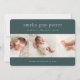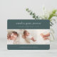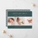 El elegante y clásico anuncio de nacimiento presenta tres fotos alineadas una al lado de la otra sobre un fondo verde forestal neutral de género. Personalice el nombre del bebé, las estadísticas de nacimiento y la firma familiar con letras blancas nítidas.
