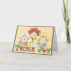 Tres adorables bebés de arte popular con gorritos y ramos de flores, y la palabra arte "Triples Alegría" en letras de patchwork. ¡Una tarjeta maravillosa para anunciar el nacimiento de trillizos, o para felicitar a una pareja por sus tres nuevos bebés! También hay sellos postales a juego.