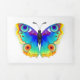 Arcoiris, realista, de dibujo artístico, colores brillantes mariposa pavo real con alas detalladas texturizadas sobre fondo blanco. Mariposa arcoiris.