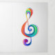 Tecla musical extraída de capas multicolores de colores arcoiris sobre fondo blanco.