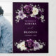Elegante invitación de boda de verano floral presenta un ramo de rosas acuarela peonías en tonos de ciruela morada, floral de marfil champán y salvia, exuberantes hojas botánicas de eucalipto verde. Por favor, encuentre más diseños y variaciones coincidentes en mi tienda "blissweddingpaperie". Y no dude en contactarme para una mayor personalización o artículos coincidentes.