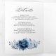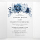Invitación de boda elegante con tema de azul polvoriento y azul marino que incluye un ramo elegante de flores de rosa de pizarra, azul polvoriento, azul marino y brotes de hojas de eucalipto azul. Por favor, contácteme para cualquier ayuda en personalización o si necesita cualquier otro producto con este diseño.