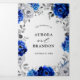 Invitación de boda elegante de tres partes con tema azul real, plata y blanco con un ramo elegante de flores de rosa de color azul real, azul marino, plata, blanco puro y hojas de eucalipto verde salvia. Por favor, contacte conmigo para cualquier ayuda en personalización o si necesita cualquier otro producto con este diseño.