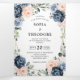 Boda geométrica con flores azul y turquesa Invitación con elegantes ramos de azul marino / azul turbio, blanco , rubor , rosa de melocotón y hojas de eucalipto verde salado y elegante marco geométrico neutro purpurina. Comuníquese conmigo para obtener ayuda sobre la personalización o si necesita cualquier otro producto con este diseño.