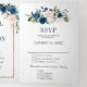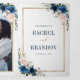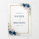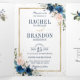 Hermosa invitación de boda boho floral moderna geométrica que presenta gráficos florales de acuarela pintados a mano / rosas en tonos ricos de azul marino y rosa rubor con marco dorado. Por favor, contácteme para cualquier ayuda en la personalización o si necesita cualquier otro producto con este diseño.