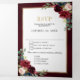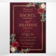 Invitación de boda geométrica floral burdeos azul marino oscuro con elegante ramo de hojas de eucalipto azul marino, azul real, blanco, rubor, burdeos, rosa marsala y verde salvia y elegante marco geométrico neutro con brillo dorado. Por favor, contácteme para cualquier ayuda en personalización o si necesita cualquier otro producto con este diseño.