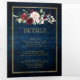 Invitación de boda geométrica floral burdeos azul marino oscuro con elegante ramo de azul marino, azul real, blanco, rubor, burdeos, rosa marsala y hojas de eucalipto verde salvia y elegante marco geométrico neutro con brillo dorado. Por favor, contácteme para cualquier ayuda en personalización o si necesita cualquier otro producto con este diseño.