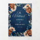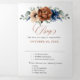Invitación de boda con tema floral elegante azul marino, terracota, naranja tierra que incluye un ramo elegante de rosas de color azul marino, peonías de color terracota y hojas de eucalipto verdes. Por favor, contácteme para cualquier ayuda en personalización o si necesita cualquier otro producto con este diseño.
