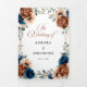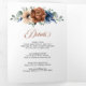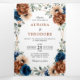 Invitación de boda elegante con tema floral de tierra naranja y azul marino con un ramo elegante de rosas y peonías de color azul marino y terracota y hojas de eucalipto verdes. Por favor, contácteme para cualquier ayuda en la personalización o si necesita cualquier otro producto con este diseño.
