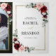 Anuncio Tríptico Boda moderna geométrica floral de tono burdeos ros