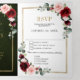 Tarjeta de invitación de boda elegante y moderna con diseño geométrico romántico y floral en acuarela que presenta un ramo de rosas de color burdeos / marsala, rosa claro, púrpura y melocotón con follaje a juego. Perfecto para una boda de otoño o mediados de verano. Puede encontrar más diseños y variaciones en mi tienda "blissweddingpaperie". Y no dude en contactarme para personalizar o encargar artículos a juego