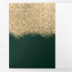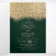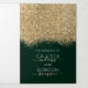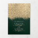 La elegante, glamorosa y moderna invitación de boda y lista de invitados es perfecta para la pareja comprometida contemporánea y con estilo. Cuenta con un bloque de color con brillo dorado impreso falso y confeti con purpurina sobre un simple fondo verde bosque. La parte trasera muestra el mismo brillo pero con un panel más grueso sobre un mensaje especial de la novia y el novio, que se puede personalizar o eliminar. Este diseño chic, lujoso y único será un éxito con todos sus invitados!