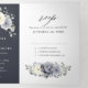La invitación de boda de invierno floral elegante cuenta con un ramo de flores de acuarela gris elegante, marfil y plata con vegetación de tonos helados. Por favor, contácteme para cualquier ayuda en personalización o si necesita cualquier otro producto con este diseño.