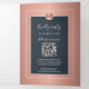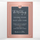 Elegante y lujoso rosa metálico elegante, elegante invitación a la boda de oro con foto personalizado, tarjeta rsvp, CÓDIGO QR al sitio web y la información de la dirección del huésped con formas geométricas y patrón de diamante con un guión moderno de tipografía con letras a mano blanca en un fondo azul medianoche. +++++ Personalízalo con tu foto, detalles y el monograma de iniciales de nombres de pareja! ++++++ Es idóneo para bodas de temporada de lujo elegante interior elegante, elegante y glamorosa corbata negra formal.
