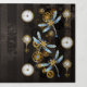 Marcos antiguos y llaves con engranajes de oro y de latón, decorados con libélulas mecánicas de vapor punk sobre fondo marrón, rayado.