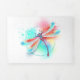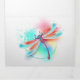 Rojo, volador, dibujado artísticamente, en colores brillantes con hiridismo texturizado, alas azules sobre fondo blanco, pintadas con salpicaduras de pintura acuarela. Flora de dragón roja brillante.