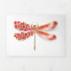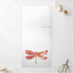 Dibujado artísticamente, dorado, libélula con joyas de color rojo y alas decoradas con rojo, floreciente, cerezo japonés con joyas sobre fondo blanco. Dragonfly de oro.