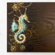 Anuncio Tríptico Fondo de madera con caballito de mar mecánico