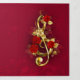 Clef dorado del trébol, decorado con rosas rojas y hojas de oro sobre fondo texturado.