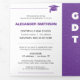 ¡Es hora de honrar al graduado! Invitar a todos a la gran fiesta para celebrar la graduación de su séquito. O cambiar los detalles para hacerles saber de la ceremonia. Incluye grandes letras en negrita en negro, emparejadas con una gorra dibujada a mano con tassel. El tipo de letra moderno completa el aspecto. Añade dos fotos al interior junto con los logros de la escuela de graduación y planes futuros. El diseño viene en los populares colores de las escuelas de rojo, naranja, verde, morado, azul, oro y marrón. O edite el diseño para ajustar los colores a su elección. Productos a juego disponibles.