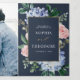 Invitación de boda moderna con hortensias de acuarela azul claro/azul polvoriento con rosas pastel rosa, rubor, melocotón, blancas, peonías, hojas de eucalipto salvia, ramas y follaje. Tonos románticos suaves y soñadores en tonos apagados, diseños florales de acuarela para primavera y verano para combinar con la temática de su boda. Por favor, busque más diseños y variaciones coincidentes en mi tienda "blissweddingpaperie". Y no dude en contactarme para una mayor personalización o artículos coincidentes.