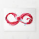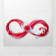 Símbolo infinito de flujo continuo de vino tinto vertiendo en vidrio de vidrio sobre fondo blanco.