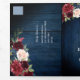 Elegante y moderna tarjeta de invitación de boda romántica con tríptico de acuarela floral con detalles y tarjetas de respuesta, cuenta con un ramo de rosas de acuarela en burgundy / marsala, rosa claro, azul marino, melocotón con follaje a juego y luces de cuerda y fondo de tarro de mason. Perfecta para una boda de otoño / mediados de verano. Por favor, busque más diseños y variaciones coincidentes en mi tienda "blissweddingpaperie". Y no dude en ponerse en contacto conmigo para personalizar o para artículos que coincidan.