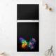 Arcoiris, mariposa monarca luminosa, pintada de forma artística con ramo de iridiscente, rosas brillantes y luminiscentes sobre fondo negro. Mariposa arcoiris.