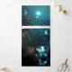 Mariposas brillantes de menta por la noche en un fondo abstracto negro.